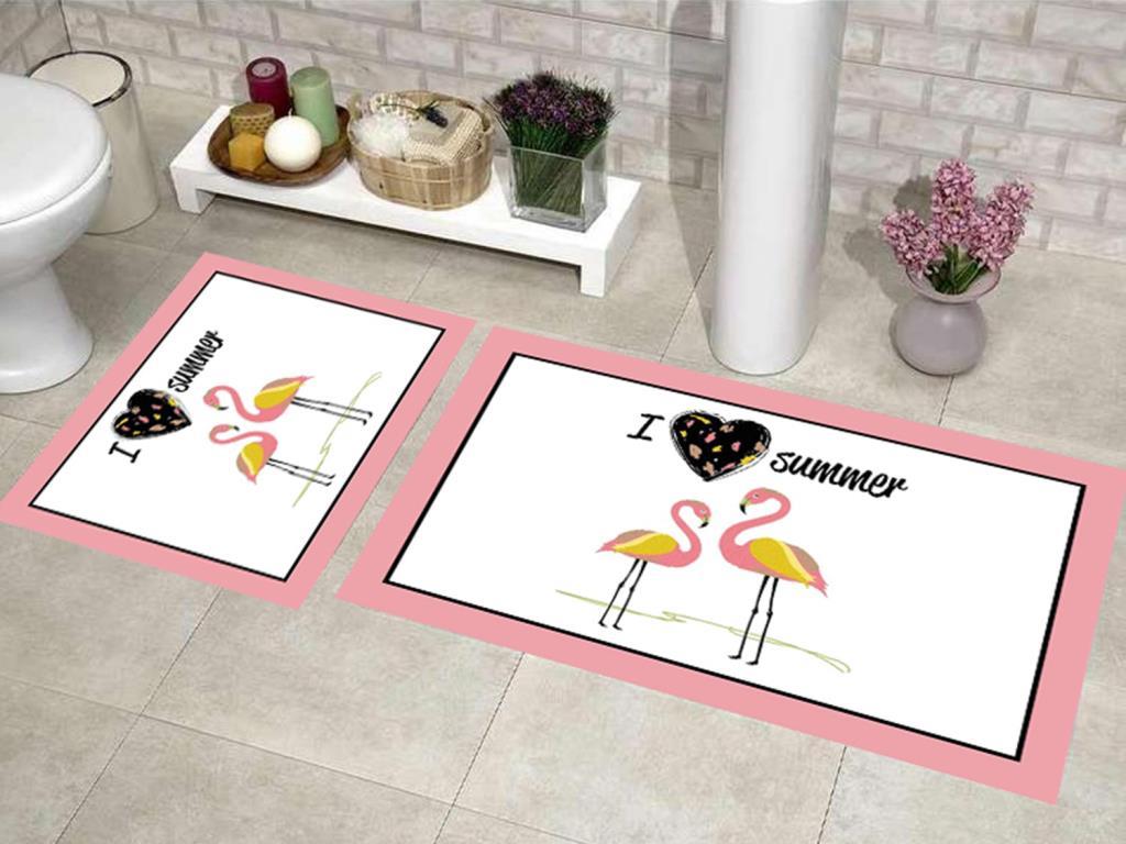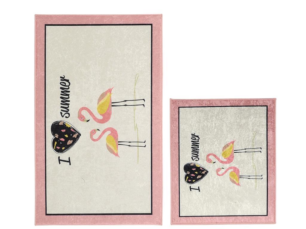 طقم سجادة حمام مستطيلة الشكل مكونة من قطعتين إيليت لوكس مسحوق فلامنغو