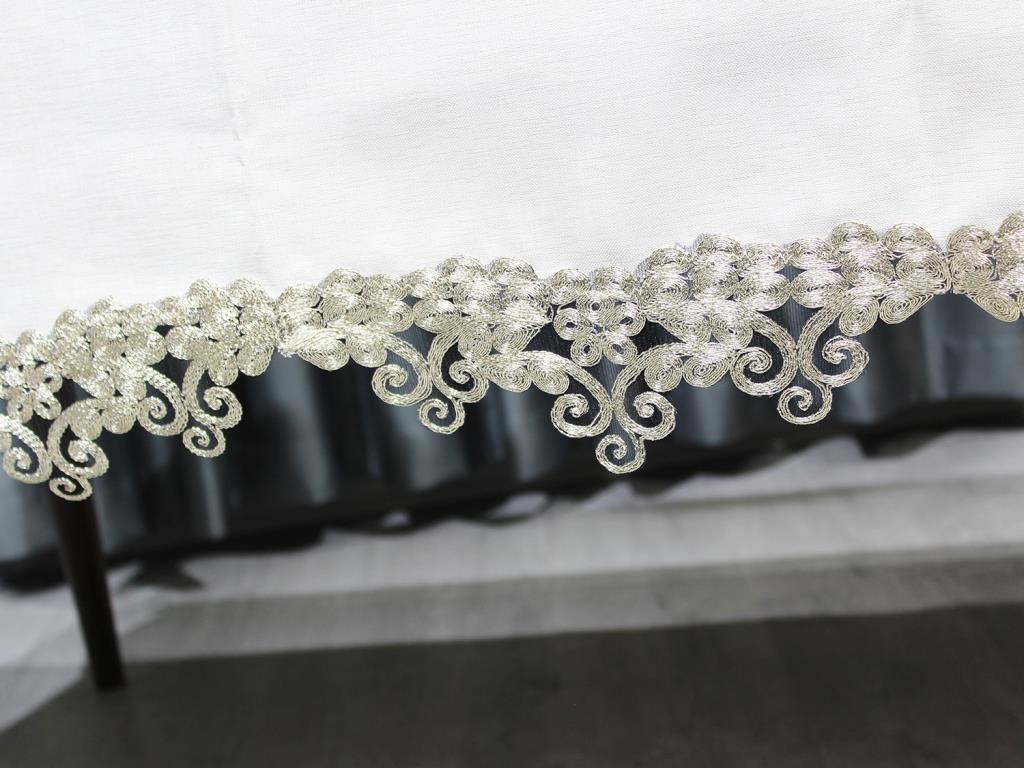 تم إعطاء حواف مفرش المائدة نقشًا أنيقًا مع Guipure الفرنسية.