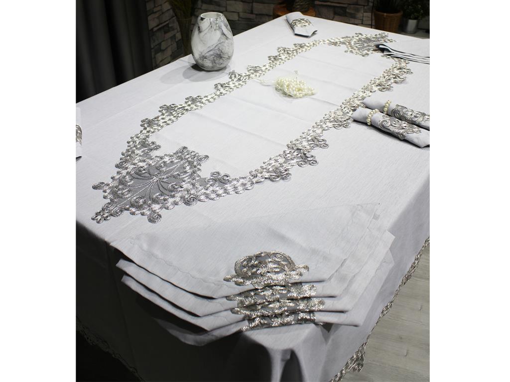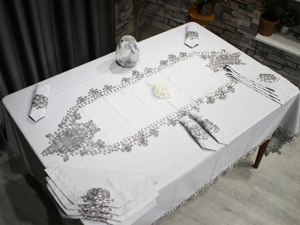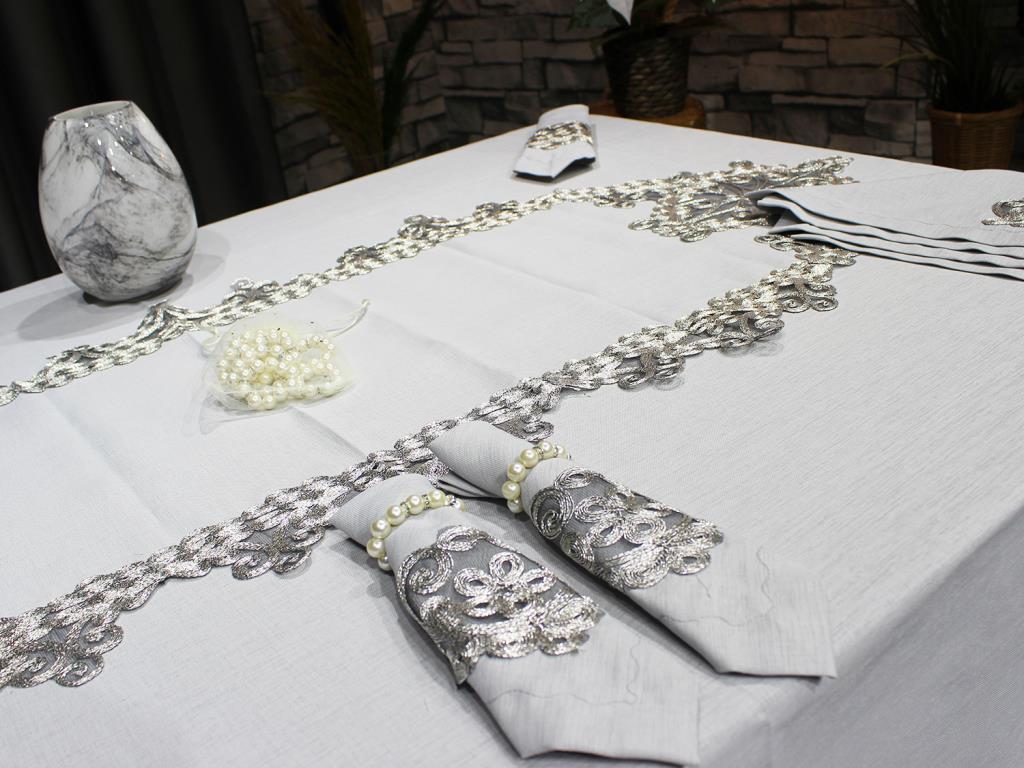 :معلومات المنتج "Fransız Güpürlü Kelebek Masa Örtüsü Takımı 26 Parça Gri"