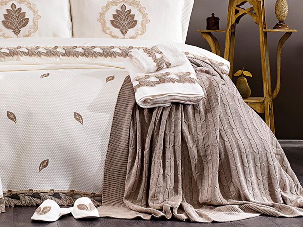عبوة مهر من علياء بتطريز فرنسي 20 قطعة كريم بني