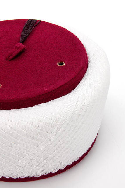 مميزات عمامة أنقرة سلطان. مظهر أنيق يد ملفوفة في شكل صليب Fesi أحمر كلاريت ثقب الهواء...قراءة المزيد
