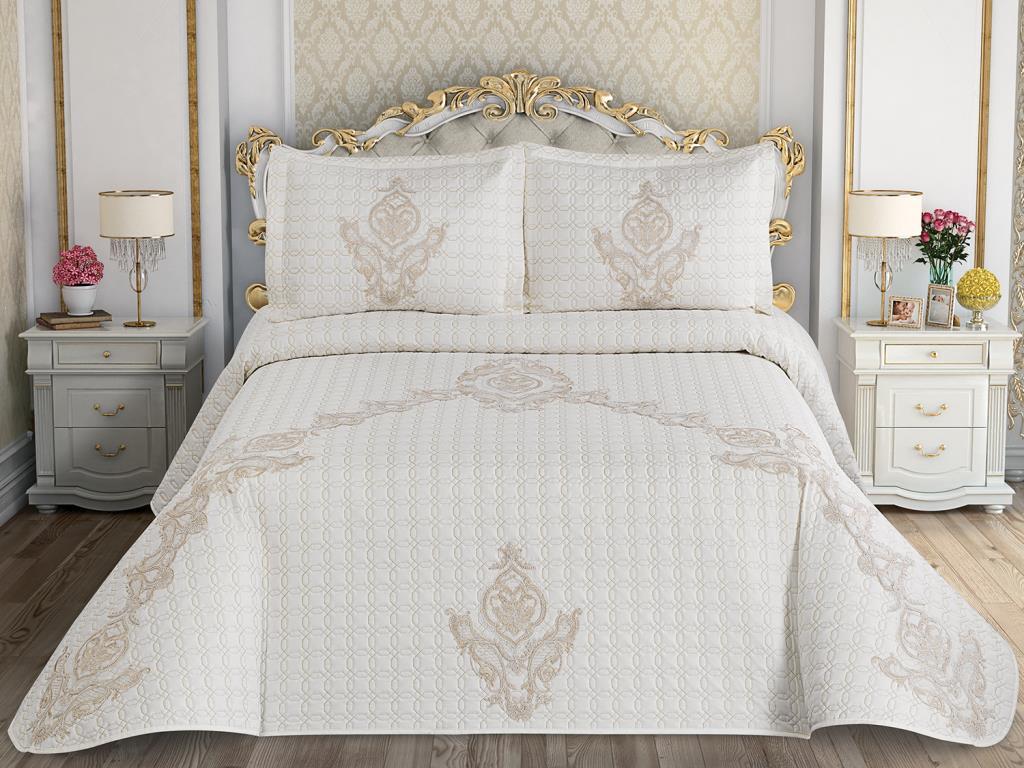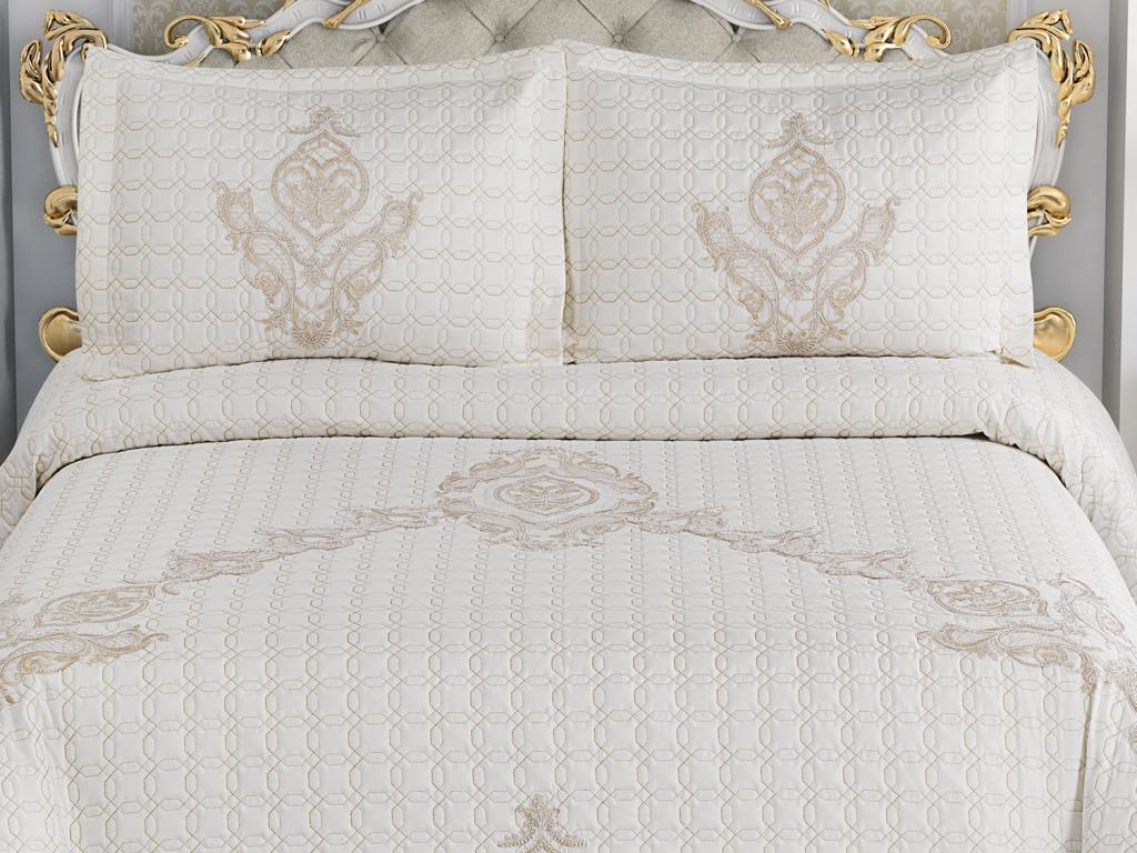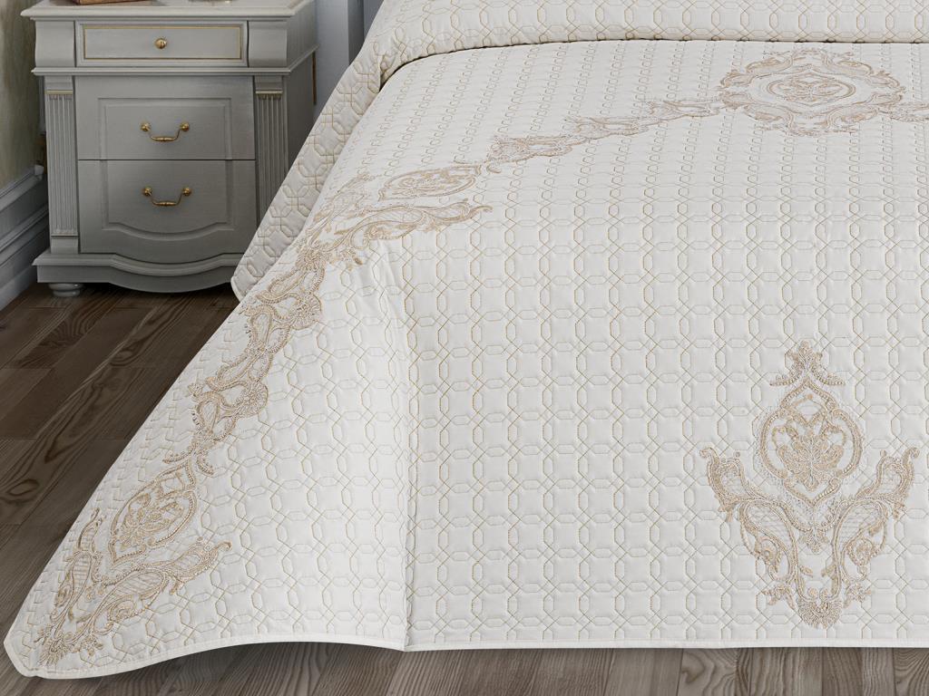 نسيج غطاء السرير من القطن. بالإضافة إلى ذلك ، تم إنشاء تصميم أنيق مع خياطة اللحف.