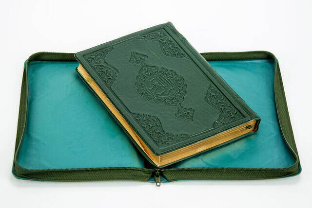 مصحفى - عربي سادة - مقاس الكيس - أخضر - بغطاء - مغلق - بخط كمبيوتر