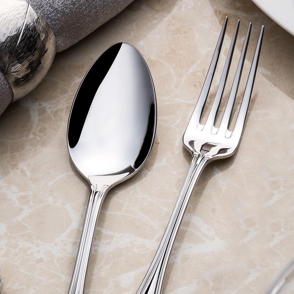 قمنا بتفسير أجود أنواع الفولاذ في أطقم أدوات تناول الطعام Lalezar بحرفية مثالية. ستضيف قيمة إلى طاولاتك من خلال الفولاذ اللامع الذي يشبه المرآة والأسلوب الكلاسيكي.