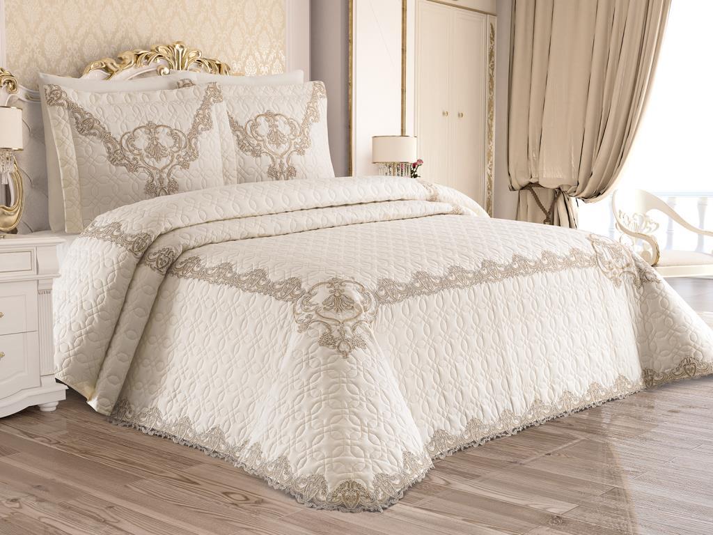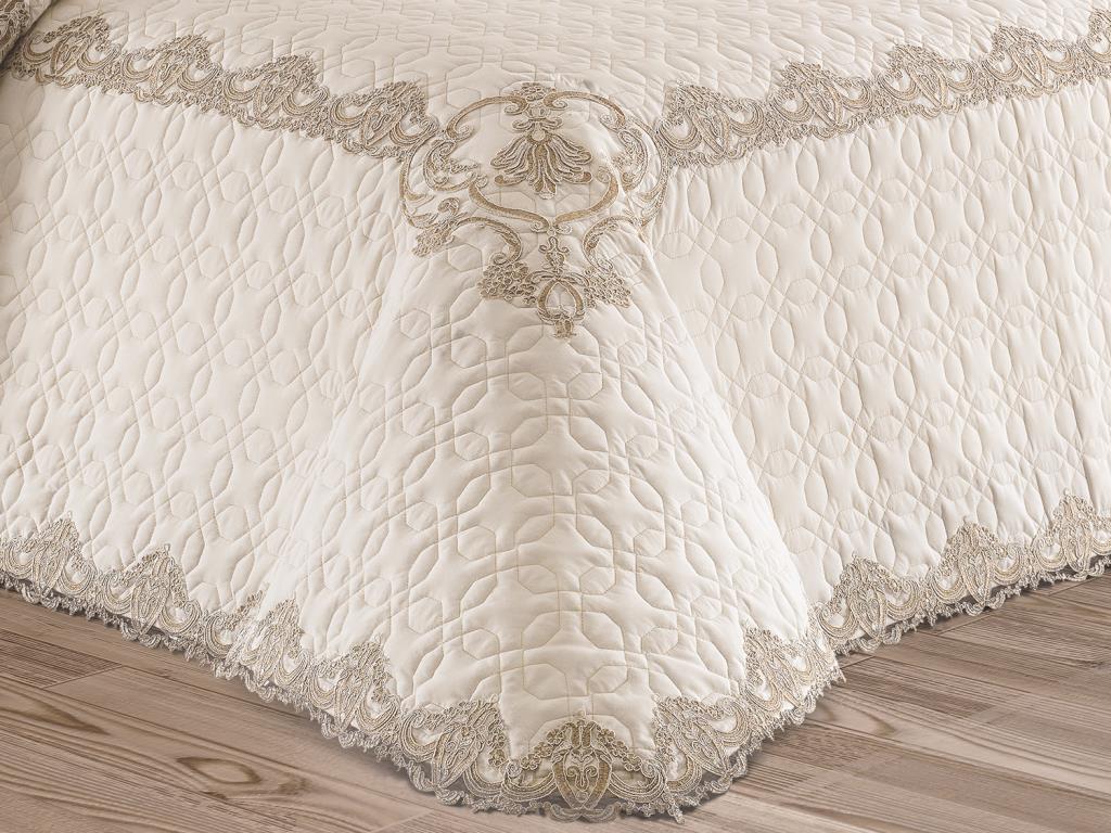 تم إنشاء نقش أنيق مع جبر فرنسي على 3 جوانب من غطاء السرير.