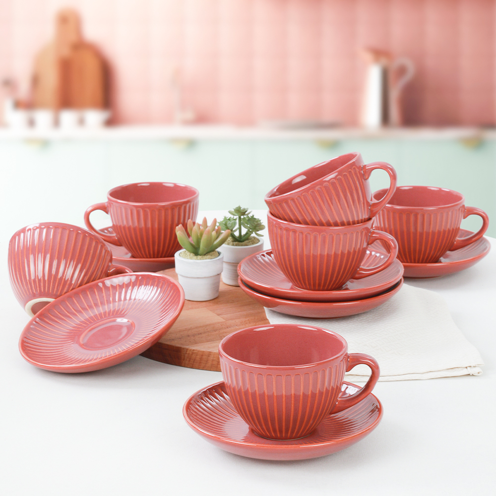 Seçenekleriniz arasında asil rengi ile şık bir görünüm sağlayan Keramika Mercan Myra Çay Fincan Takımı 12 Parça 6 Kişilik, çay saatlerinize ayrı bir hava katacaktır. Gelenekselliği ve modernliği beraberinde getiren Myra formunu özel olarak hazırlanan turuncu renginin asaleti ile birleştiren bu çay takımı, sevdikleriniz için de çok hoş bir hediye de olacaktır.