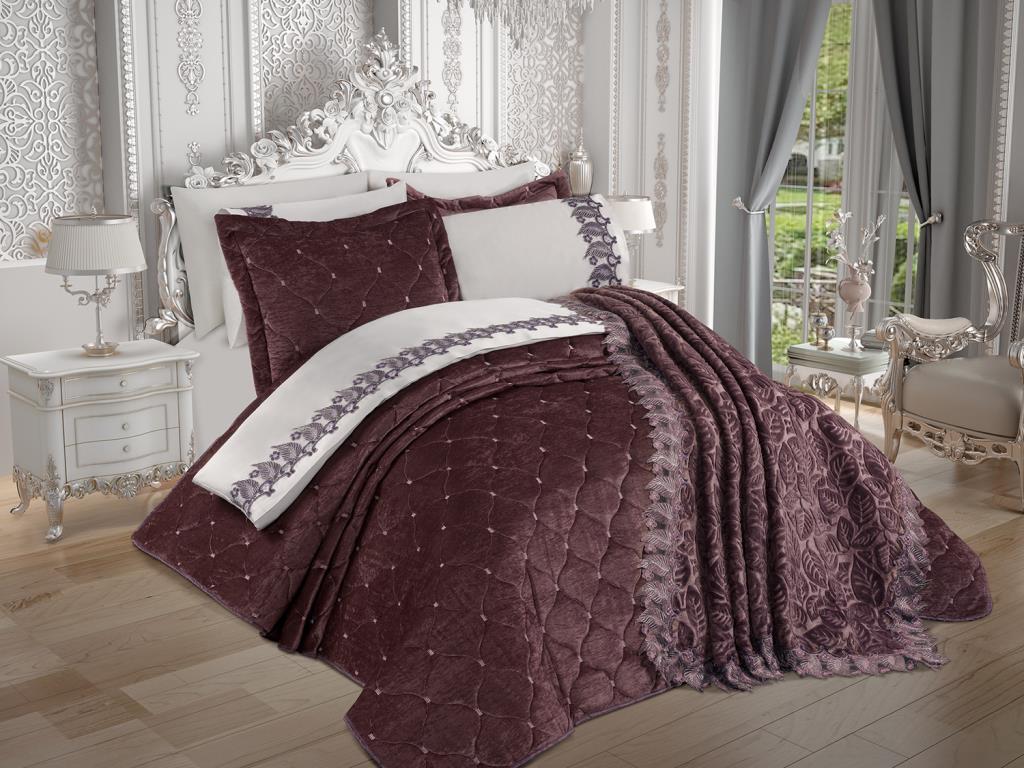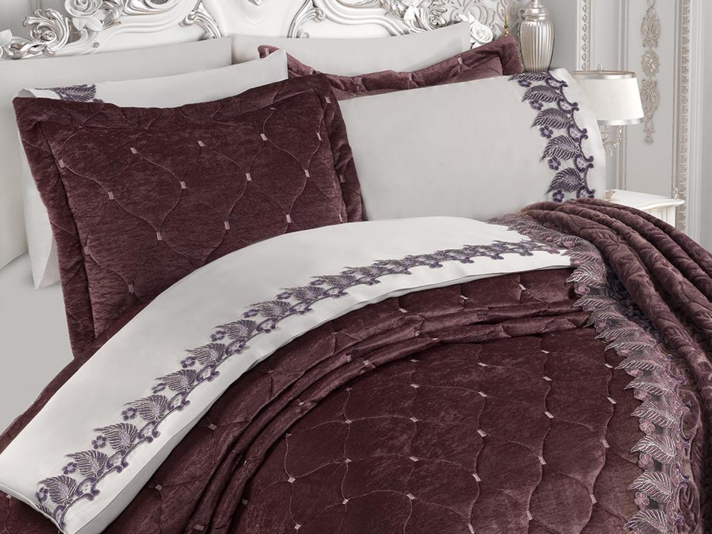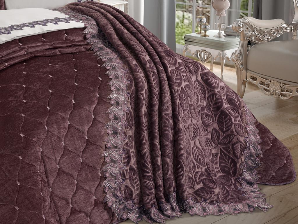 تضيف تفاصيل الدانتيل الفرنسي الجبر على البطانية جوًا رائعًا للمنتج.