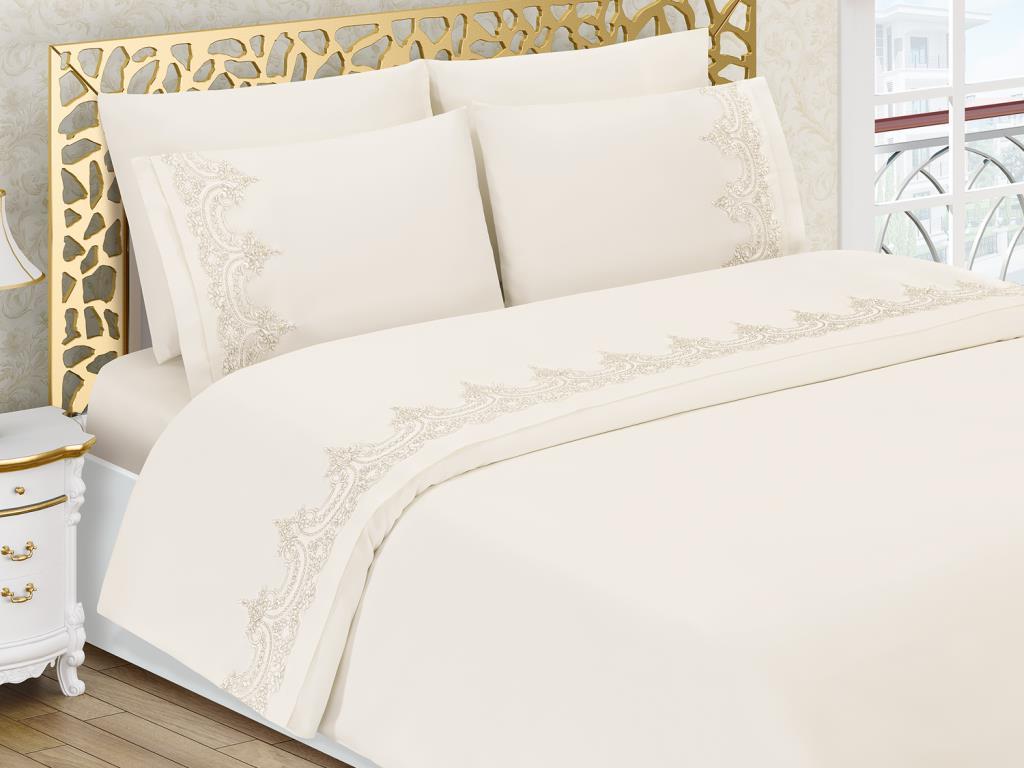 :معلومات المنتج "Şevval مجموعة غطاء لحاف المهر الفرنسي Guipure كريم"