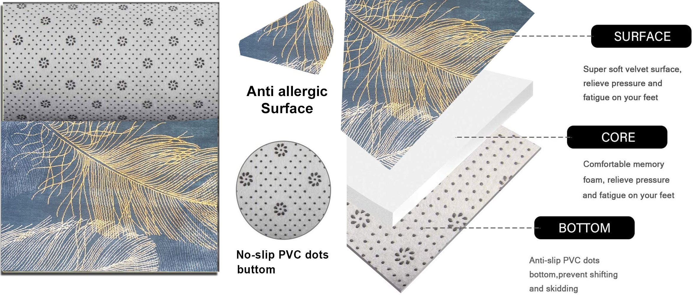 Hissiyat: Ayağın altında inanılmaz derecede yumuşak hissettirecek, kenar detaylarıyla inanılmaz bir görünüme sahip. Hipoalerjenik, aynı zamanda düşük bir hav yüksekliğine sahiptir, böylece kapılar kolayca açılıp kapatılabilir, bu da kullanım açısından eşsizdir.