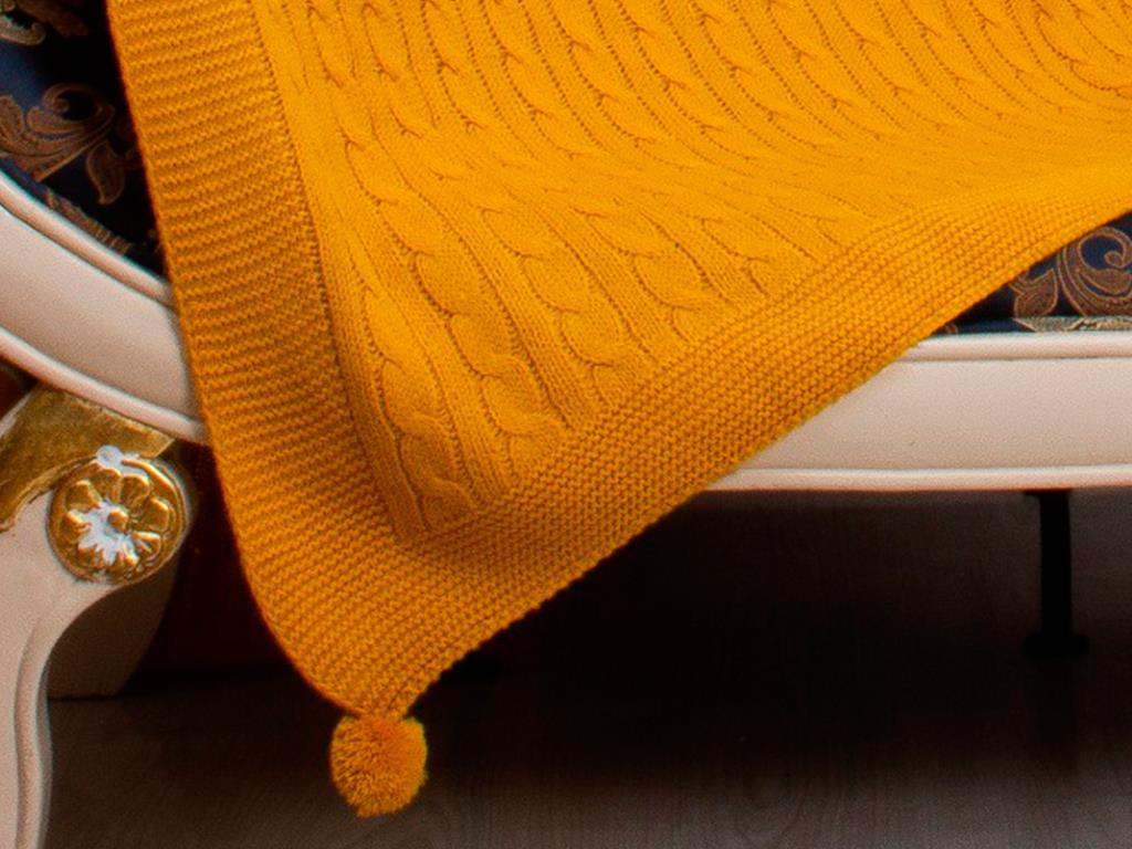 :معلومات المنتج "بطانية تريكو منسوجة منقوشة تومي تي في لون أصفر خردلي"