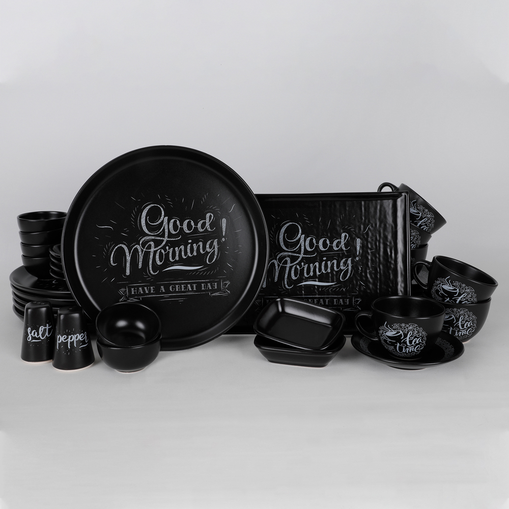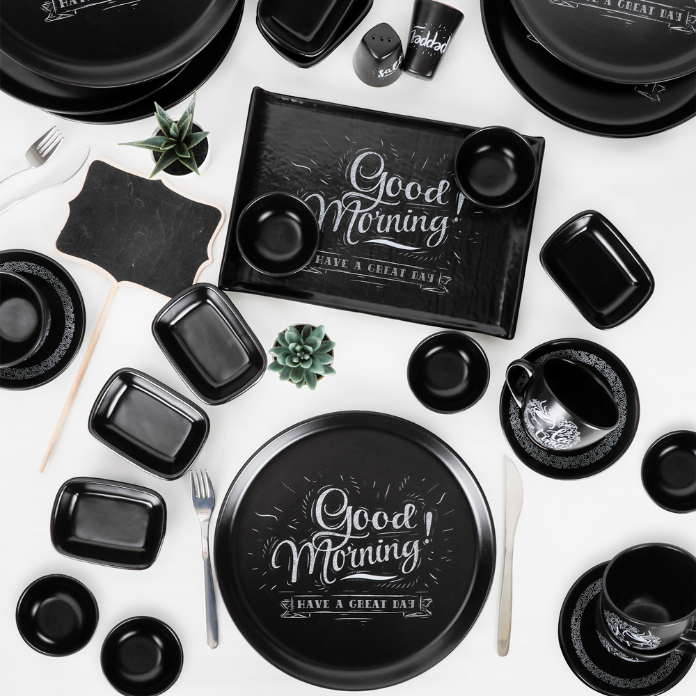 Mat siyah serüveninin tipografik çizgilerle sofralara konuk olduğu, Keramika 6 kişilik vintage house kahvaltı takımı sunumların trendi haline belirliyor! Şık sunum yapacağınız bu kahvaltı takımıyla güzel bir sofra kurabilir veya sevdiklerinize unutulmaz bir hediye olarak seçebilirsiniz.