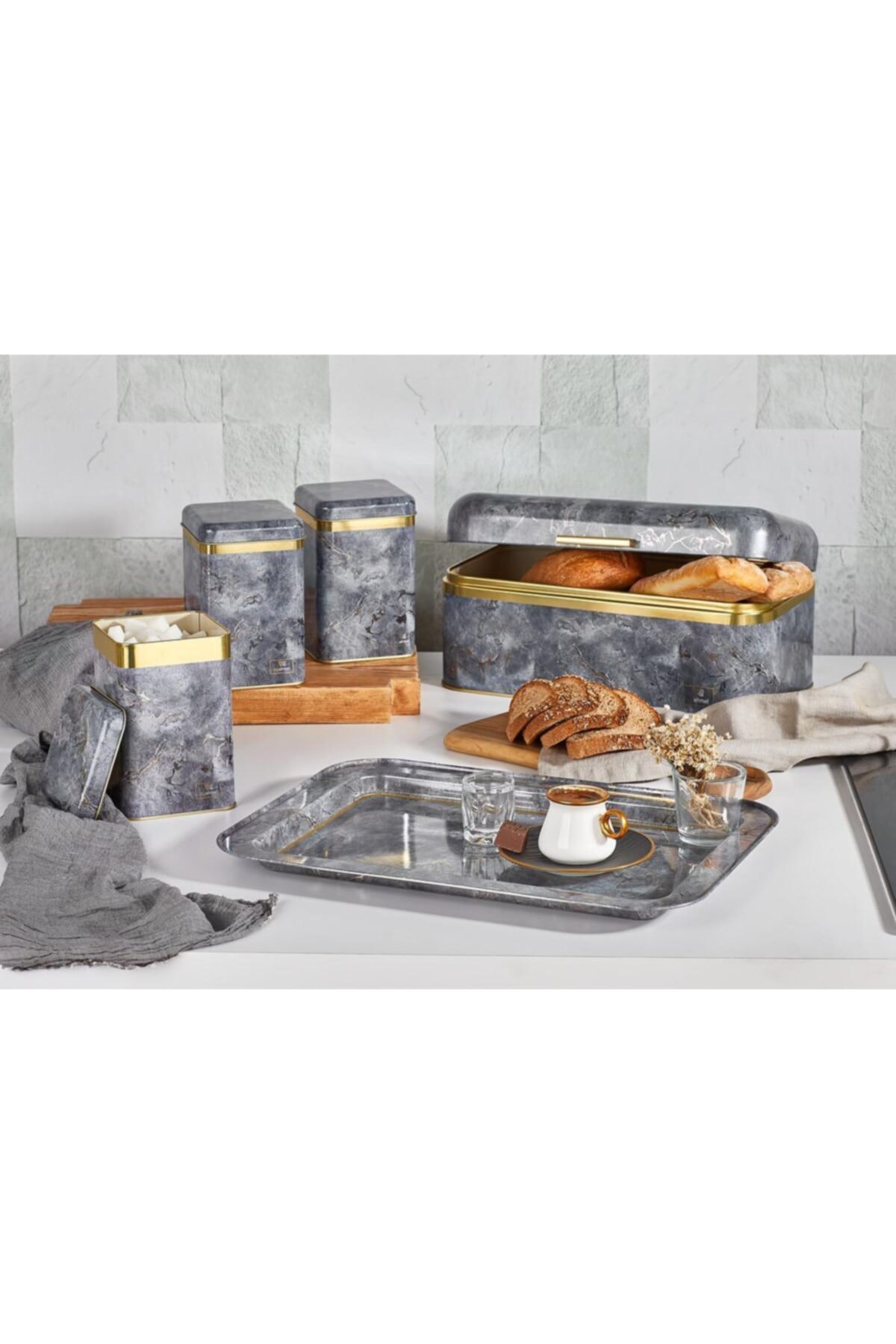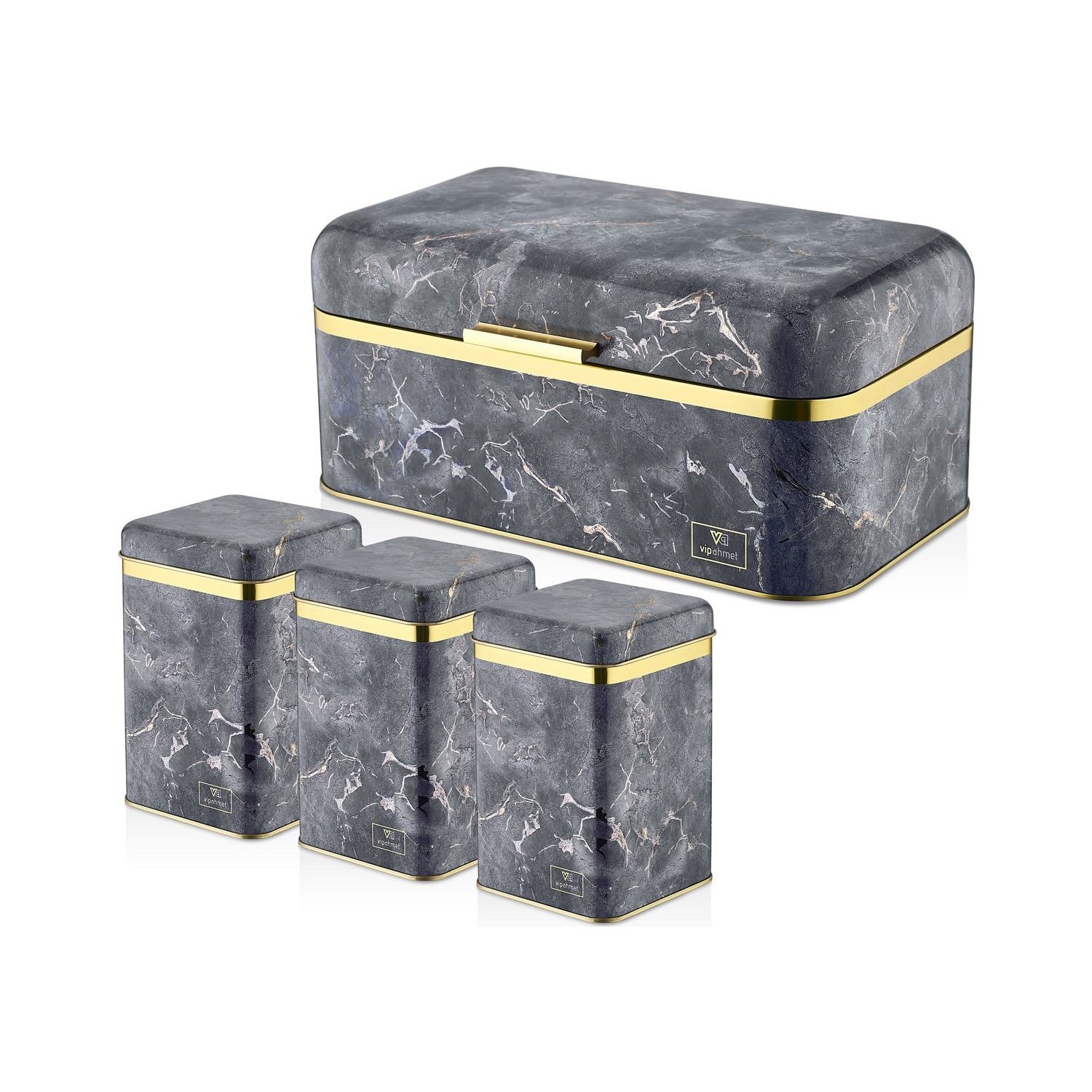 :معلومات المنتج "Vip Ahmet طقم خبز مستطيل معدن نمط رخام 4 قطع | VIPAHMET-VP-244"