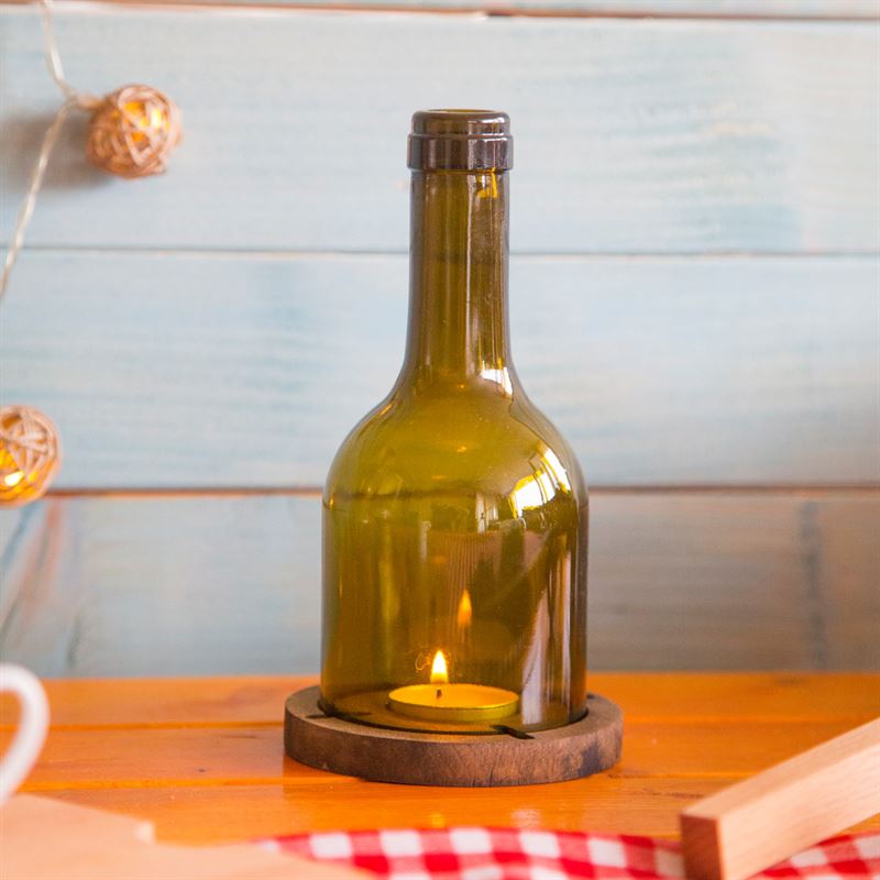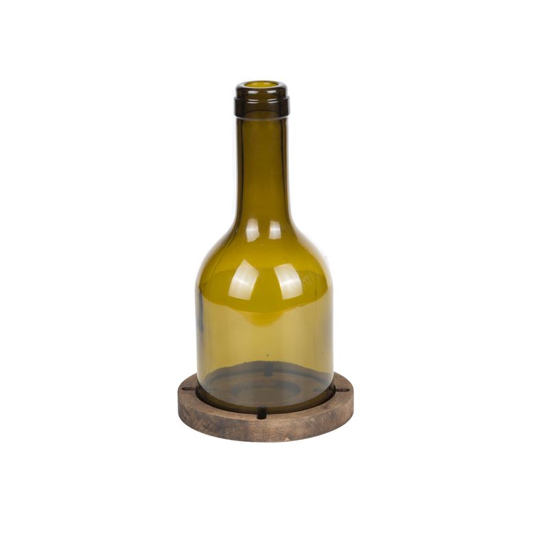ارتفاع الزجاجة: 17 سم ، القطر: 9.5 سم ، سماكة الخشب 1.5 سم.