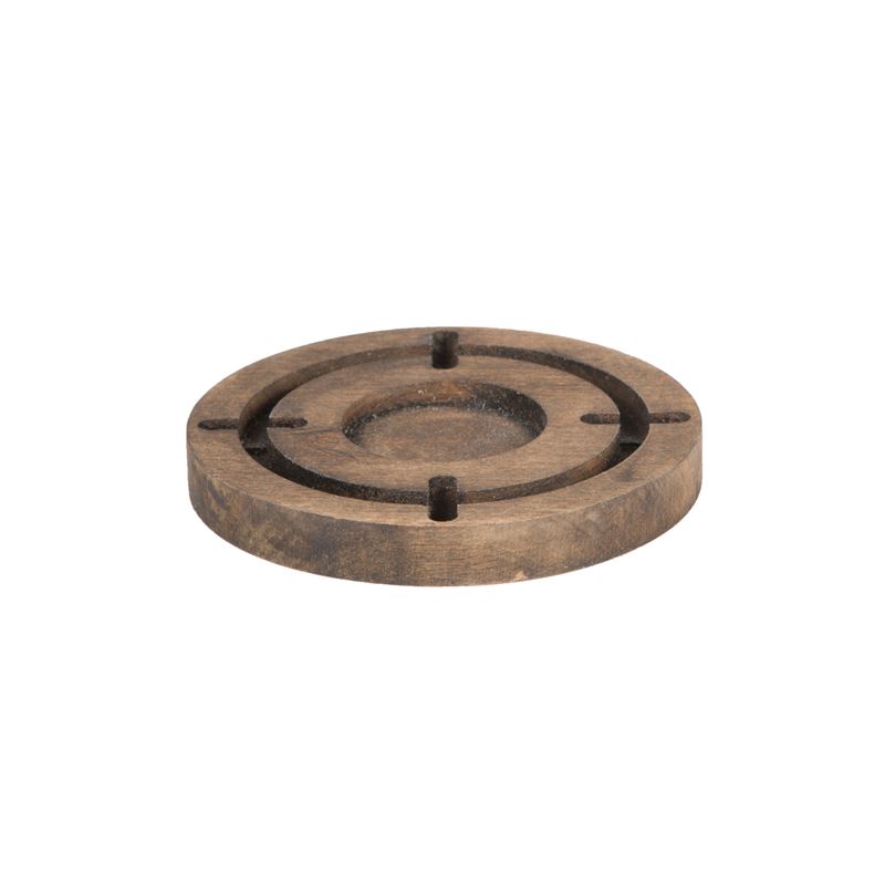 المنتج يتكون من 1 زجاجة مزخرفة وحامل شموع خشبي.