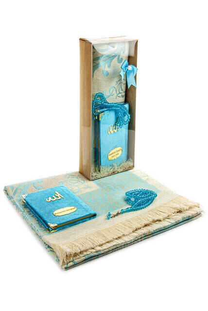 :معلومات المنتج "كتاب ياسين مخملي مغطى - حجم الجيب - لوحة الاسم - سجادة الصلاة - مسبحة - محاصر - لون أزرق"