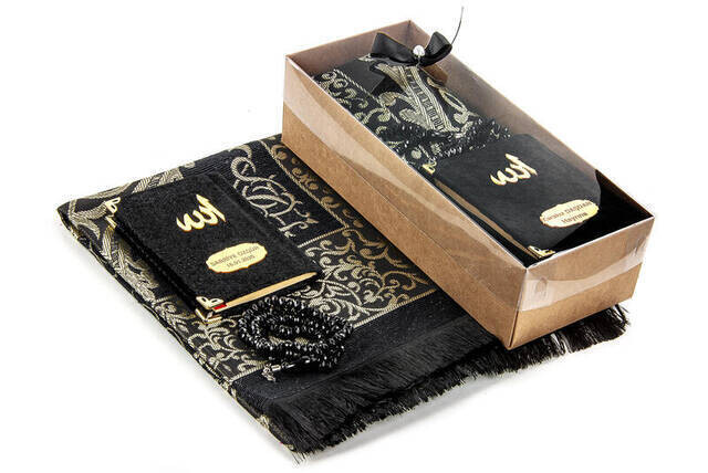 :معلومات المنتج "كتاب ياسين مخملي مغطى - حجم الجيب - لوحة الاسم - سجادة الصلاة - مسبحة - محاصر - لون اسود"