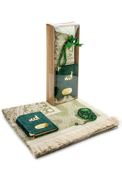 :معلومات المنتج "كتاب ياسين مخملي مغطى - حجم الجيب - لوحة الاسم - سجادة الصلاة - مسبحة - محاصر - لون أخضر"