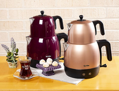 "*1850-2200 W. *220-240 V - 50Hz. *Gehäuse aus Edelstahl 304. *1.2L Teekannenkapazität. *1.7L Wasserkocherkapazität. *Mesh-Teefilter in der Teekanne. *Kompatibler Deckel mit Sieb. *Ergonomischer Griff * Kabellose Verwendung * Ein-Aus-Taste * Automatische Warmhalte- und Kochtaste * Temperatur- und Kochanzeige * Energieübertragungsbasis mit 360-Grad-Drehung * Tropffreies Auslaufdesign * Hergestellt in der Türkei. "