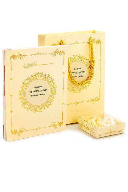 10 PCS - Yasin Set - Beutelgröße - 64 Seiten - Mit Namensschild - Rosenkranz - Mit Pappbeutel - Cremefarben