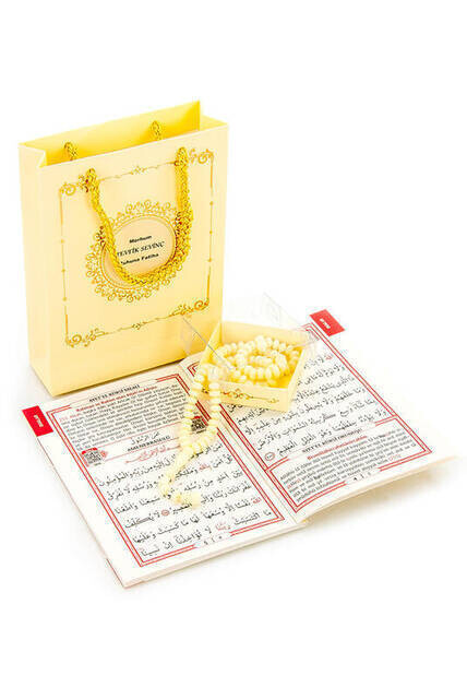 Produktinformationen "10 PCS - Yasin Set - Beutelgröße - 64 Seiten - Mit Namensschild - Rosenkranz - Mit Pappbeutel - Cremefarben"