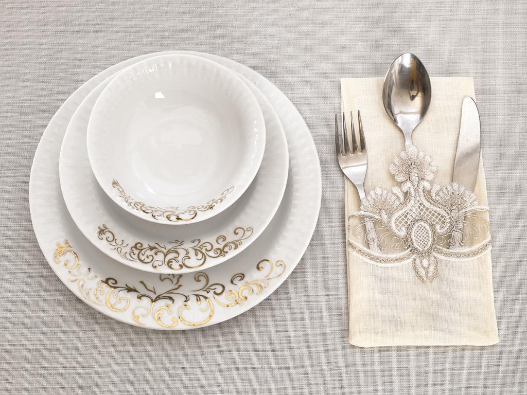 38 Stück French Laced Clove Tischdecken Set Cream Brown