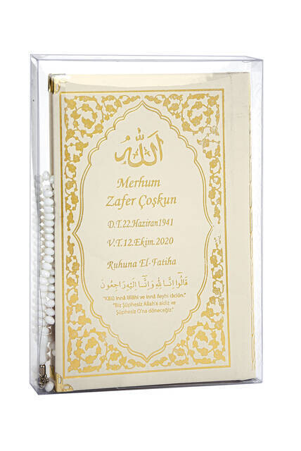Produktinformationen "50 PCS - Name gedrucktes Hardcover-Buch von Yasin - Mittlere Größe - Klassisches Muster - Rosenkranz - Transparente Box - Cr"