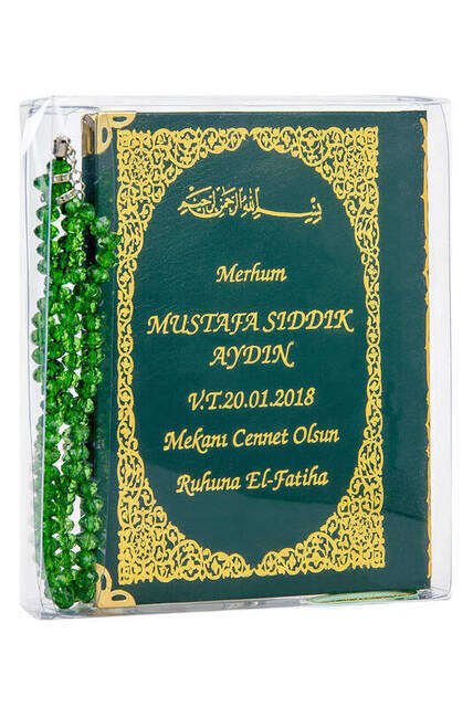 Produktinformationen "50 PCS - Name Printed Hardcover Book of Yasin - Taschengröße - 128 Seiten - Mit Rosenkranz - Transparente Box - Grün"