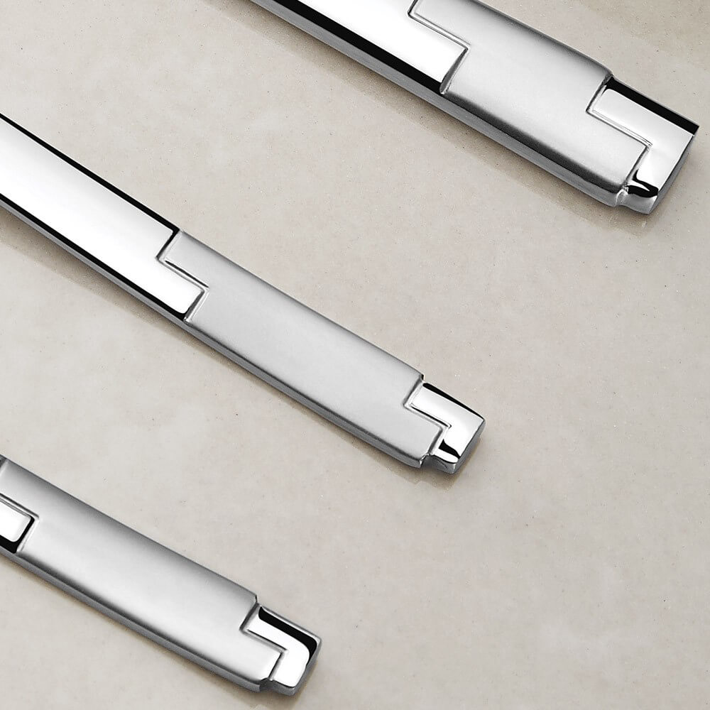 Das Londoner Besteck glänzt mit all seiner Eleganz und Pracht auf Ihrem Tisch mit seinen seidigen Satin-Körperdetails.
