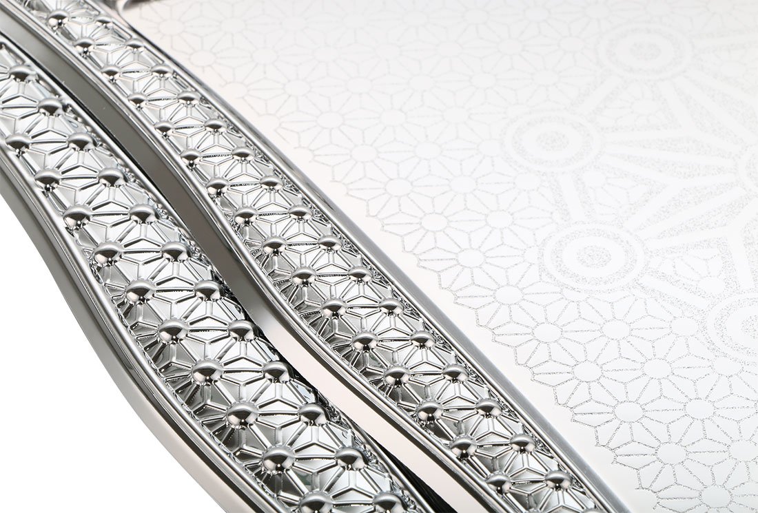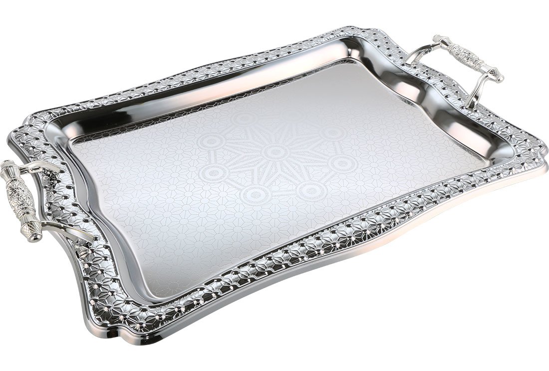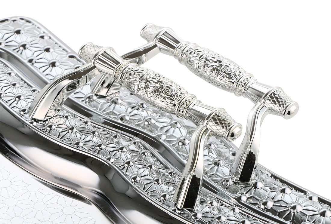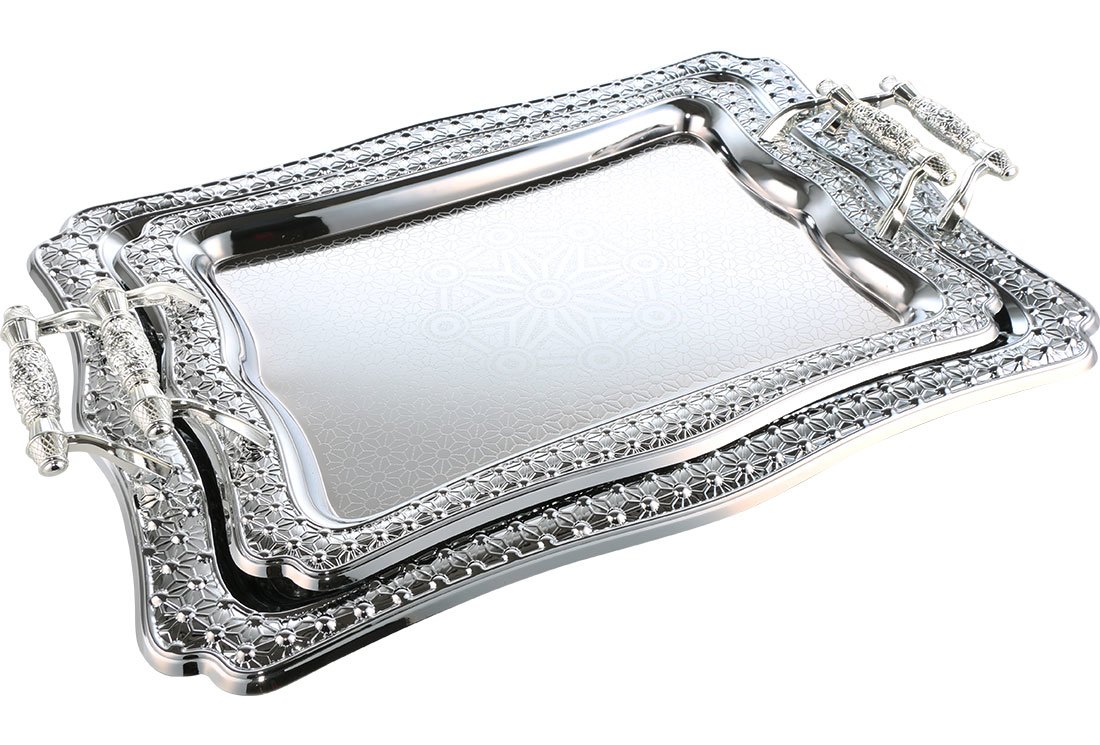 Lieferumfang und Abmessung: 1 x Almina | 2-er | Serviertablett | Silber | Aus Metall | mit Verzierung | AL-4041-6