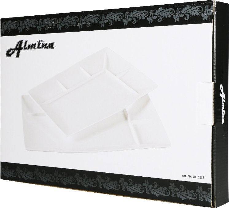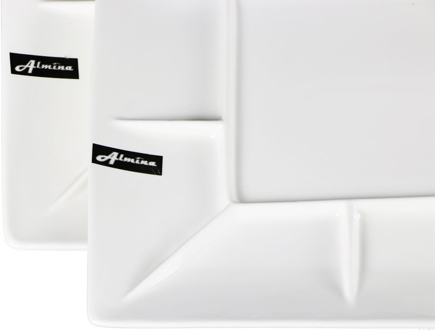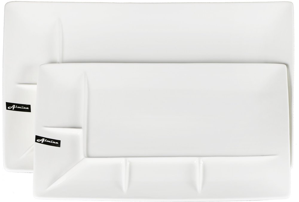 Lieferumfang und Abmessung: 1 x Almina 2er Porzellan Service Teller mit Trennungsstrich | Weiß