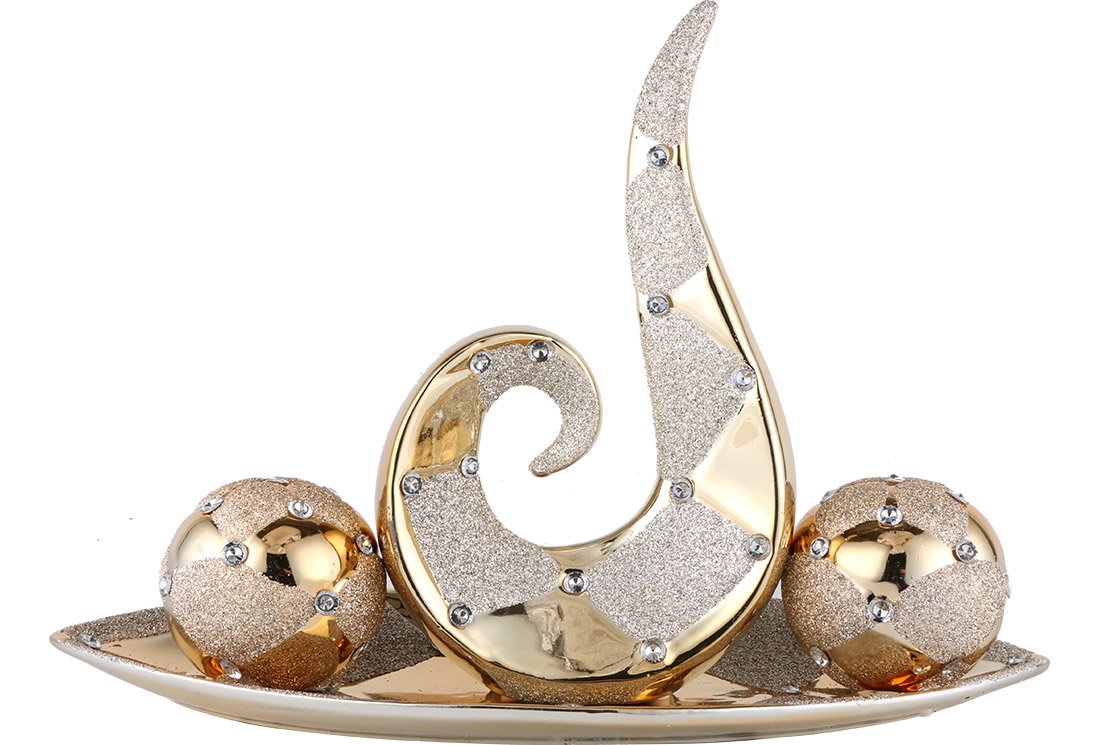 Lieferumfang und Abmessung: 1 x Almina | 4-er | Deko-Kerzenhalter | Kerzenständer | Gold | aus Keramik | Al-5777-g