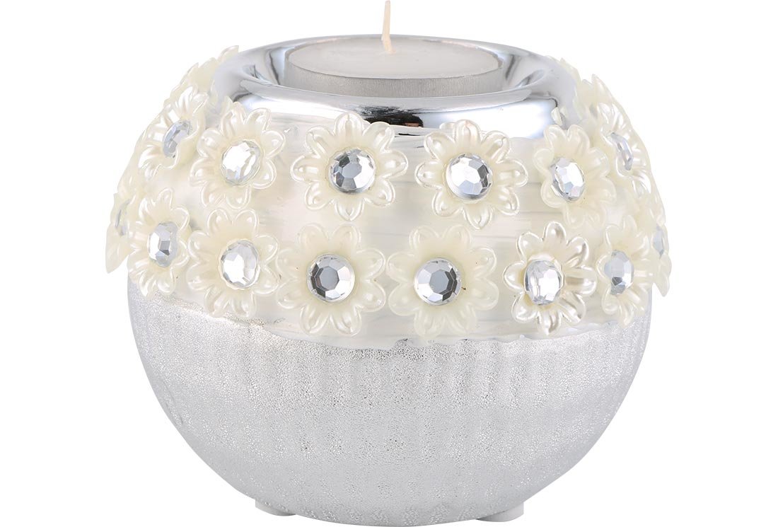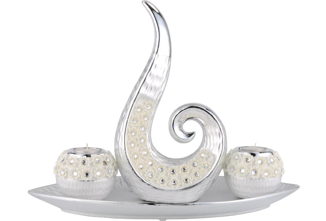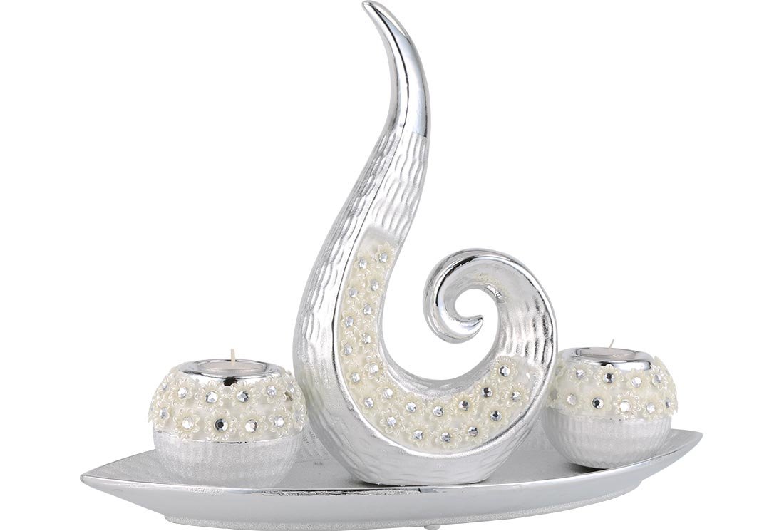 Lieferumfang und Abmessung: 1 x Almina | 4-er | Deko-Kerzenhalter | Kerzenständer | Silber | aus Keramik | Al-8822s