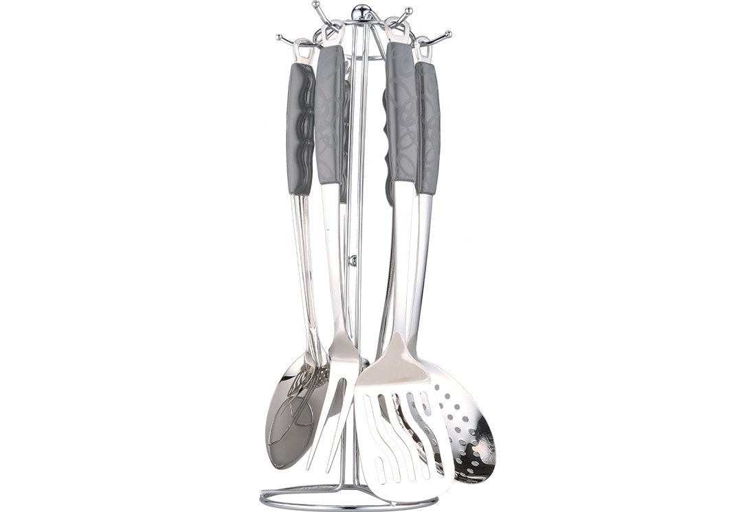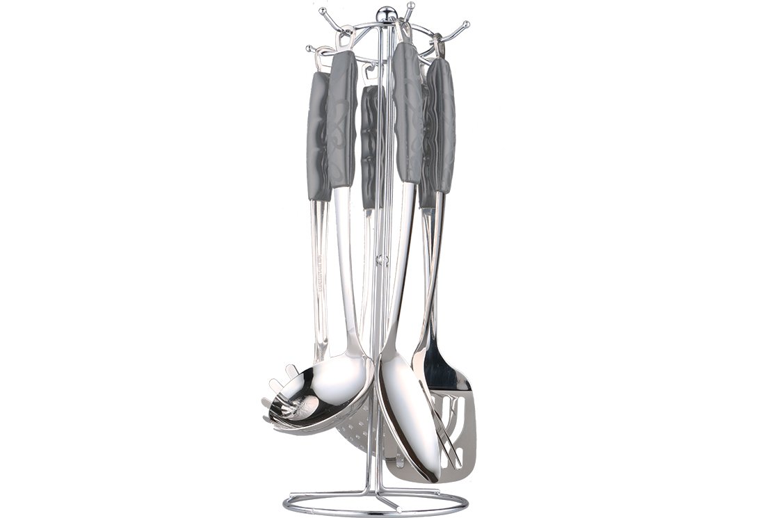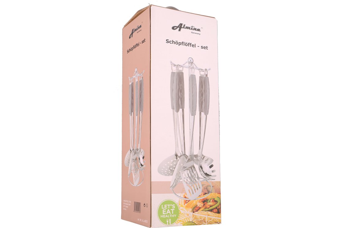 Lieferumfang und Abmessung: 1 x Almina | 7 Teilig | Kochbesteck-Set | Küchenhelfer-Set | Silber | Aus Edelstahl | Al-4953