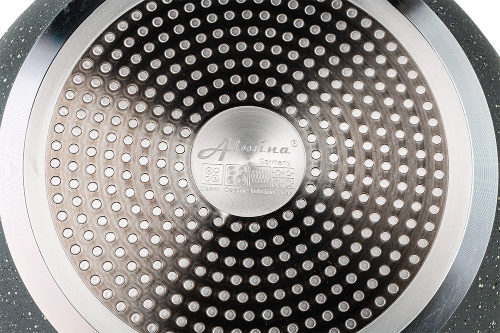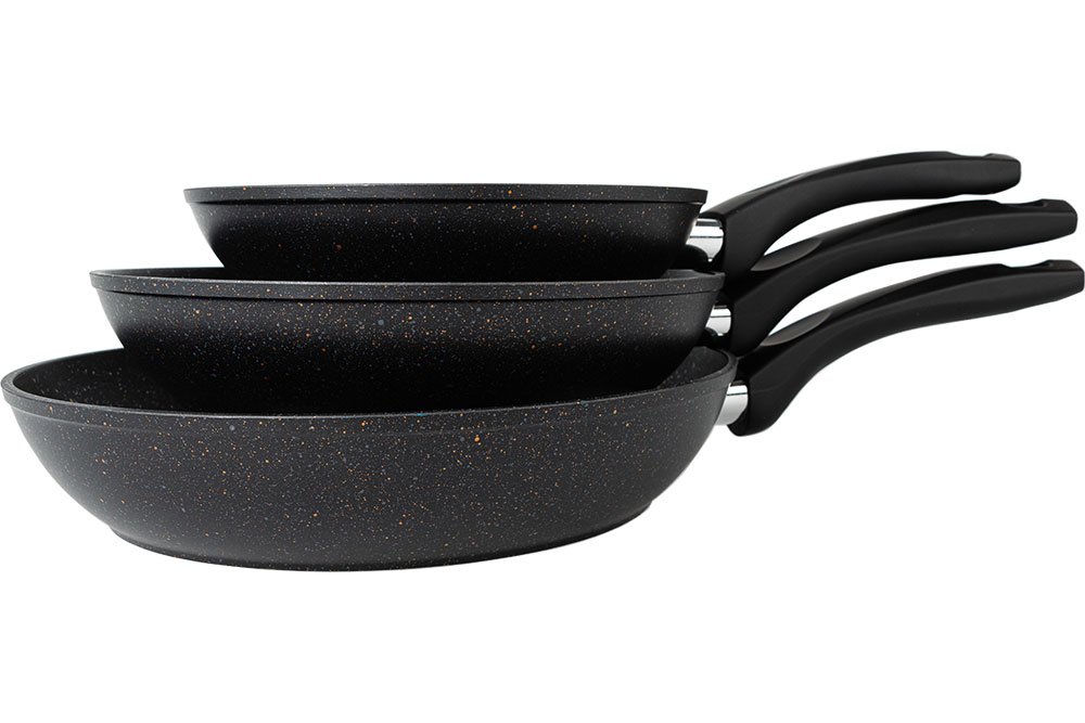 Lieferumfang und Maße: 1 x Almina | Bratpfannen-Set | Marmorbeschichtung | 20 cm | 24 cm | 28 cm | Schwarz | Al-5721