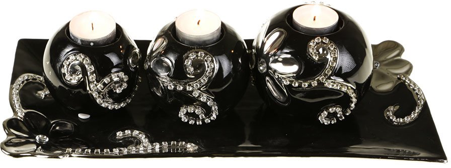 Artikelbezeichnung: Almina Deko Kerzenhalter-Set 4-teilig Schwarz, Silber