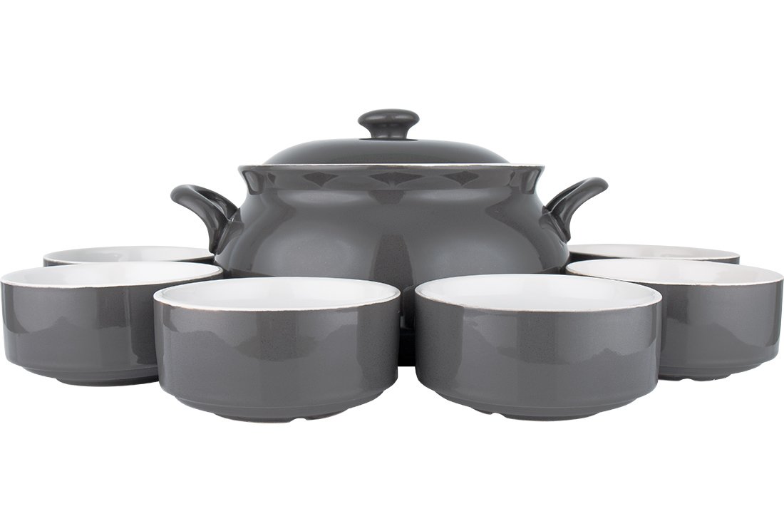 Lieferumfang und Abmessung: 1 x Almina Eintopfset | Schwarz | aus Porzellan | 6 Teilig | AL-8074