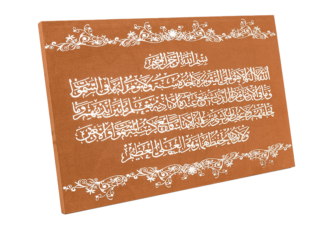 Lieferumfang und Abmessung: 1 x Almina | Islam | Gemälde | Wandbild | Ayetel Kürsi | Braun & Silber | Al-dini-04