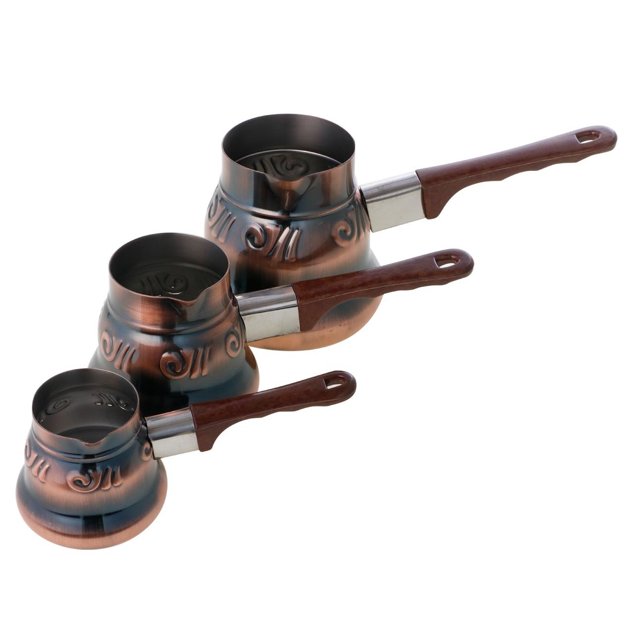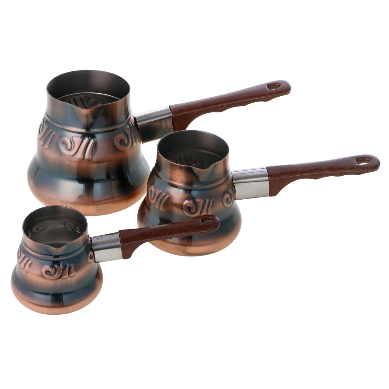 Lieferumfang und Abmessung: 1 x Almina Kupfer Kaffeekannen Set | 3 Teilig