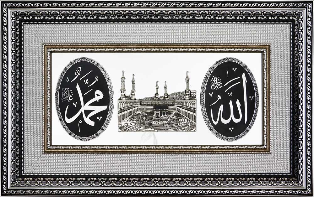 Name des Produkts: Almina Religiöses Gemälde 3D "Allah-Kabe-Mohammed" 58x95 cm Silber
