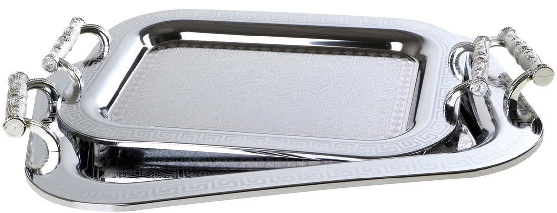 Lieferumfang: 1x Almina Serviertablett Luxus 2-tlg. Silber