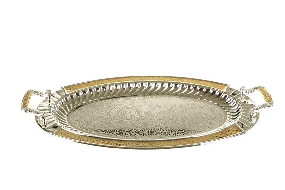 Lieferumfang: 1 x Almina Serviertablett Elegant 2-tlg.-Set Gold mit graviertem Blumenmuster oval
