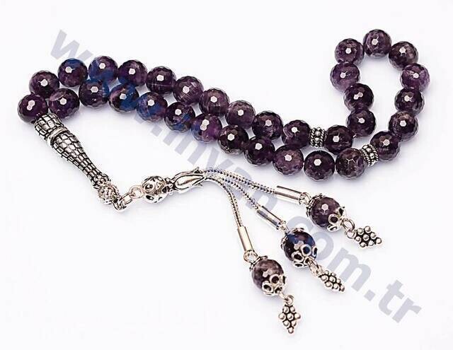 Bu ametist taşı tesbih ametist taşının en güzel tonlarından özel olarak şeçilerek üretilmiştir. Bu orjinal ametist taşından üretilmiş olan tesbihin püskülü, imameleri, ayracı hiçbir yerde bulamıyacağınız model ve tasarımda olup, bu ametist tesbihler firmamızın bizzat tasarladığı modelde üretilmiştir. Ürünlerimizde orijinal doğal taşların yanı sıra estetikliğini arttırmak amacıyla bazı süsleme tesbih aparatları kullanılmış ve ürünlerin estetik görünümleri arttırılmıştır. Ayrıca orjinal ametist taşı tesbihlerimiz firmamızın özel olarak üretmiş olduğu doğal taş tesbihlerde ip kesme problemini ortadan kaldırmak için kullanılan kopma ve dağılmalara karşı dayanıklı,kopmayan taş ipi olan elastik misina tarzı özel lastik ipe dizilmiştir. Normal kullanımda bu ip oldukça dayanıklı esnek ve uzun ömürlüdür. Bu özellikleriyle ürünlerimizi ip kopması, tesbih dağılması gibi problemleri yaşamadan rahatlıkla uzun süreler kullanabilirsiniz. Ayrıca bu özel ipin esnek elastik yapısı itibarı ile tesbihimiz her bileğe rahatlıkla geçmekte ve böylece zaman zamanda tesbihi bileğinize takarak bileklik olarak da kullanabilirsiniz. Sizlerede özel tasarım ve dayanıklı özel ipiyle üretilmiş, ametist taşı tesbih satın almanızı tavsiye ederiz. Ayrıca ametist taşlı tesbih fiyatları da toptan fiyatına yakın uygun fiyattatır. Bu doğal taş tesbihleri hem sallamak hemde stres atmak için çekerek kullanabilirsiniz. Ayrıca bu tesbihlerin tane sayısı 33 olduğundan bu tesbihleri zikir çekmek amaçlı veya namazlarda tesbih çekmek amaçlı da kullanabilirsiniz. Çok amaçlı kullanabileceğiniz bu tesbihleri aynı zamanda muhteşem enerji ve faydalarından yararlanabilmek için de kullanabilirsiniz. Bu ürün orijinal ametist taşından üretildiği için ametist taşının şu psikolojik ve fiziksel faydalara sahiptir ; Ametist taşı aşk ve sevgi taşı olarak bilinmektedir. Negatif elektrik yükünü topladığından ve taşıdığından bedendeki fazla elektrik yükünü toplayarak beyin gücünü yükseltici etkileri tespit edilmiştir. Topladığı negatif elektrik yükünü pozitif elektrik yüküne çevirir. Depresyona karşı iyi gelir. Şifa bakımından en güçlü taşlardan olan ametist taşı cilt rahatsızlıklarına, alerjik, migren, baş ağrılarına ve kalp rahatsızlıklarına şifalıdır. Uykusuzluk çekenlerin uykusuzluklarına faydalıdır.Ametist taşı enerji dolu bir taşdır. Bulundurduğu bu enerjiyle taşı üzerinde taşıyan kişiyi canlandırırcı etkisi vardır. Üzerinizde rahatca sürekli taşıyabileceginiz bir taşdır. Ametist taşı 'nın çevreye yaydığı enerji faydalıdır ve olumsuzluklardan kişiyi kurtarır.Ametist taşı 'nın özellikle düşman gördüğünüz kişilerin yanındayken üzerinizde bulundurmanız faydalıdır. Çünkü ametist taşı olumsuz enerjileri pozitif enerjiye çevireceğinden ortamdaki kötü niyetli kişilerinde düşüncelerini olumlu yapar. Enerjisi huzur vericidir ve sinir sistemine iyi gelir. Kişiye iç huzur verir. Kararsızlıkdan kurtarır ve kararlarımızı netleşdirir. Uykusuzluk çeken kişiler uykudan önce bir müddet ametist taşını elinizde tutun ve yattığınız yastığın altına koyun ve yatın. Ametist taşı eklem ağrılarına, kan dolaşımına faydalıdır. Vücudu zararlı toksinlerden arındırır ve kişiyi hayata daha sağlıklı yönlendirir. Pembe kuvarsla kullanıldığında aklı güçlendirdiği ve kalbe iyi geldiği bilinir. Tendeki hücrelerin yenilenmesini saglar ve teni güzelleşdirdiği çalışmalarla tespit edilmiştir. Kişiyi sapkın düşüncelerden kurtarır. Kanser oluşumu engellediği bilinir. Kişinin yapacakların odaklanmasına konsantre olmasına yardımcı olur. Bağışıklık sistemini güçlendirir, kanı temizler.