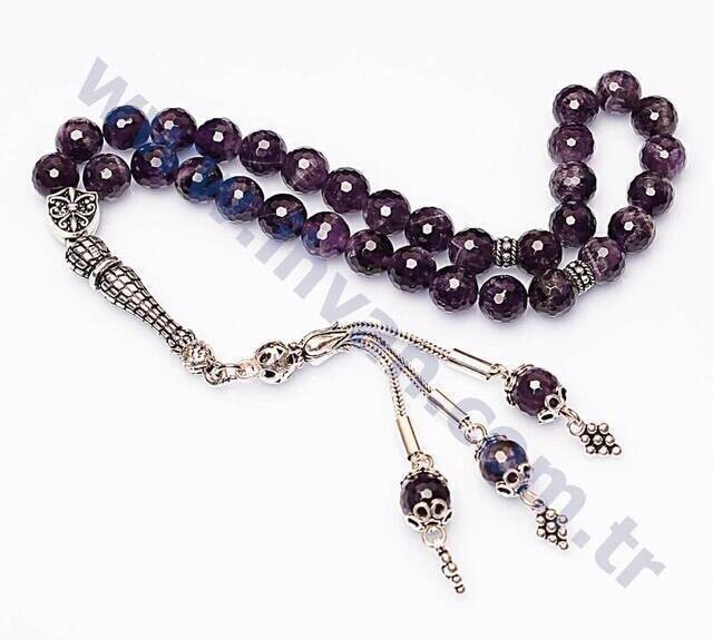 Bu ametist taşı tesbih ametist taşının en güzel tonlarından özel olarak şeçilerek üretilmiştir. Bu orjinal ametist taşından üretilmiş olan tesbihin püskülü, imameleri, ayracı hiçbir yerde bulamıyacağınız model ve tasarımda olup, bu ametist tesbihler firmamızın bizzat tasarladığı modelde üretilmiştir. Ürünlerimizde orijinal doğal taşların yanı sıra estetikliğini arttırmak amacıyla bazı süsleme tesbih aparatları kullanılmış ve ürünlerin estetik görünümleri arttırılmıştır. Ayrıca orjinal ametist taşı tesbihlerimiz firmamızın özel olarak üretmiş olduğu doğal taş tesbihlerde ip kesme problemini ortadan kaldırmak için kullanılan kopma ve dağılmalara karşı dayanıklı,kopmayan taş ipi olan elastik misina tarzı özel lastik ipe dizilmiştir. Normal kullanımda bu ip oldukça dayanıklı esnek ve uzun ömürlüdür. Bu özellikleriyle ürünlerimizi ip kopması, tesbih dağılması gibi problemleri yaşamadan rahatlıkla uzun süreler kullanabilirsiniz. Ayrıca bu özel ipin esnek elastik yapısı itibarı ile tesbihimiz her bileğe rahatlıkla geçmekte ve böylece zaman zamanda tesbihi bileğinize takarak bileklik olarak da kullanabilirsiniz. Sizlerede özel tasarım ve dayanıklı özel ipiyle üretilmiş, ametist taşı tesbih satın almanızı tavsiye ederiz. Ayrıca ametist taşlı tesbih fiyatları da toptan fiyatına yakın uygun fiyattatır. Bu doğal taş tesbihleri hem sallamak hemde stres atmak için çekerek kullanabilirsiniz. Ayrıca bu tesbihlerin tane sayısı 33 olduğundan bu tesbihleri zikir çekmek amaçlı veya namazlarda tesbih çekmek amaçlı da kullanabilirsiniz. Çok amaçlı kullanabileceğiniz bu tesbihleri aynı zamanda muhteşem enerji ve faydalarından yararlanabilmek için de kullanabilirsiniz. Bu ürün orijinal ametist taşından üretildiği için ametist taşının şu psikolojik ve fiziksel faydalara sahiptir ; Ametist taşı aşk ve sevgi taşı olarak bilinmektedir. Negatif elektrik yükünü topladığından ve taşıdığından bedendeki fazla elektrik yükünü toplayarak beyin gücünü yükseltici etkileri tespit edilmiştir. Topladığı negatif elektrik yükünü pozitif elektrik yüküne çevirir. Depresyona karşı iyi gelir. Şifa bakımından en güçlü taşlardan olan ametist taşı cilt rahatsızlıklarına, alerjik, migren, baş ağrılarına ve kalp rahatsızlıklarına şifalıdır. Uykusuzluk çekenlerin uykusuzluklarına faydalıdır.Ametist taşı enerji dolu bir taşdır. Bulundurduğu bu enerjiyle taşı üzerinde taşıyan kişiyi canlandırırcı etkisi vardır. Üzerinizde rahatca sürekli taşıyabileceginiz bir taşdır. Ametist taşı 'nın çevreye yaydığı enerji faydalıdır ve olumsuzluklardan kişiyi kurtarır. Ametist taşı 'nın özellikle düşman gördüğünüz kişilerin yanındayken üzerinizde bulundurmanız faydalıdır. Çünkü ametist taşı olumsuz enerjileri pozitif enerjiye çevireceğinden ortamdaki kötü niyetli kişilerinde düşüncelerini olumlu yapar. Enerjisi huzur vericidir ve sinir sistemine iyi gelir. Kişiye iç huzur verir. Kararsızlıkdan kurtarır ve kararlarımızı netleşdirir. Uykusuzluk çeken kişiler uykudan önce bir müddet ametist taşını elinizde tutun ve yattığınız yastığın altına koyun ve yatın. Ametist taşı eklem ağrılarına, kan dolaşımına faydalıdır. Vücudu zararlı toksinlerden arındırır ve kişiyi hayata daha sağlıklı yönlendirir. Pembe kuvarsla kullanıldığında aklı güçlendirdiği ve kalbe iyi geldiği bilinir. Tendeki hücrelerin yenilenmesini saglar ve teni güzelleşdirdiği çalışmalarla tespit edilmiştir. Kişiyi sapkın düşüncelerden kurtarır. Kanser oluşumu engellediği bilinir. Kişinin yapacakların odaklanmasına konsantre olmasına yardımcı olur. Bağışıklık sistemini güçlendirir, kanı temizler.