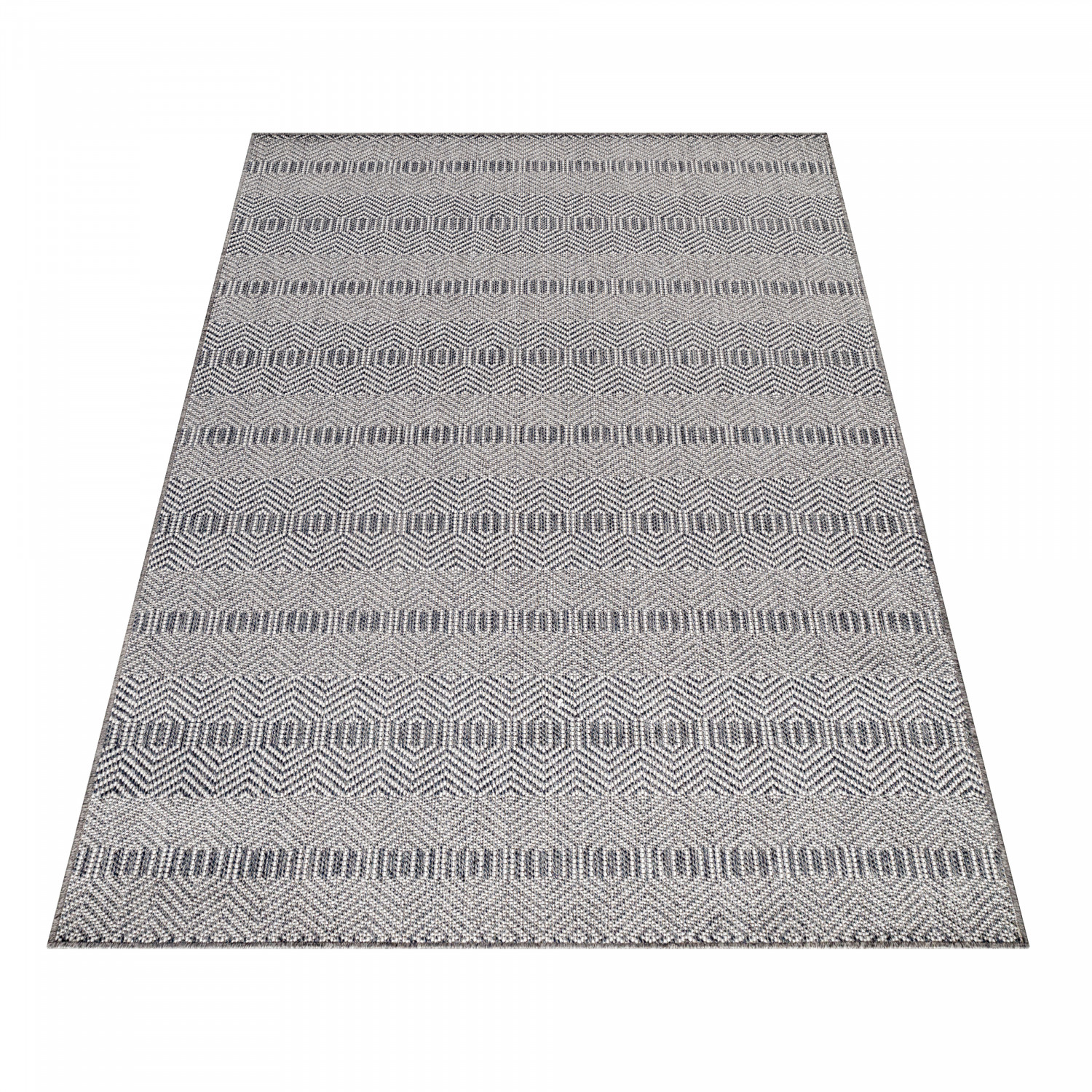 Kurzflorteppich in modernem Design. Verleihen Sie Ihrer Einrichtung mit diesem Kurzflorteppich einen neuen Schliff. Mit dem modernen Design wird jede bestehende Einrichtung aufgewertet und der Teppich bei richtiger Platzierung zum Hingucker im Raum. Das harmonische Farbspiel des Flors ist in sich stimmig und schafft in Verbindung mit passenden Möbeln, Wohnaccessoires und Deko eine stimmungsvolle Atmosphäre. Auch in hoch frequentierten Bereichen, wie dem Eingangsbereich oder Geschäftsräumen, kann der Teppich gut genutzt werden, denn das Polypropylen-Heatset ist besonders strapazierfähig und pflegeleicht. Ein Rücken aus Jute, verstärkt den Teppich und macht ihn auch in Räumen mit Fußbodenheizung nutzbar.