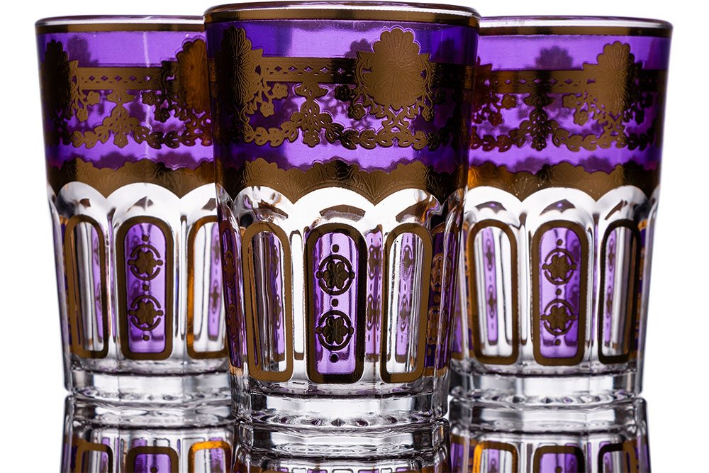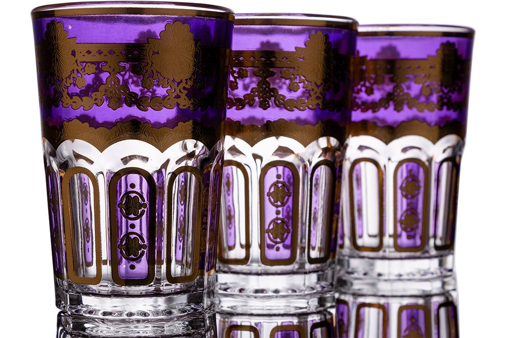 Lieferumfang und Maßen: 1 x Bavary | Gemusterte Wasserglas Set | 12 Teilig | Glas | Lila | Gold | By-2307-6