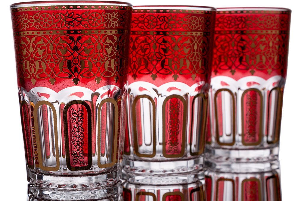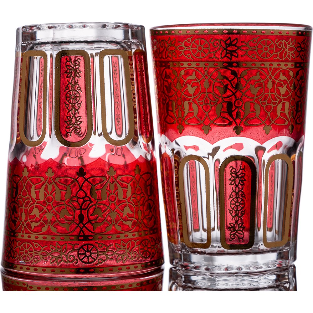 Lieferumfang und Maßen: 1 x Bavary | Gemusterte Wasserglas Set | 12 Teilig | Glas | Rot | Gold | By-2307-2