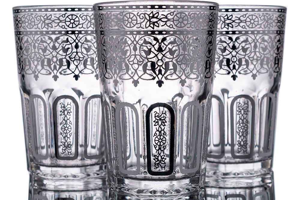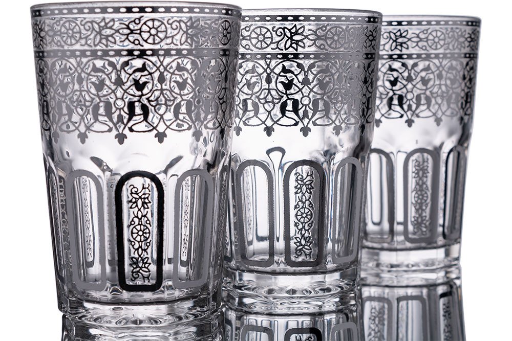 Lieferumfang und Maßen: 1 x Bavary | Gemusterte Wasserglas Set | 12 Teilig | Glas | Silber | By-2307-1