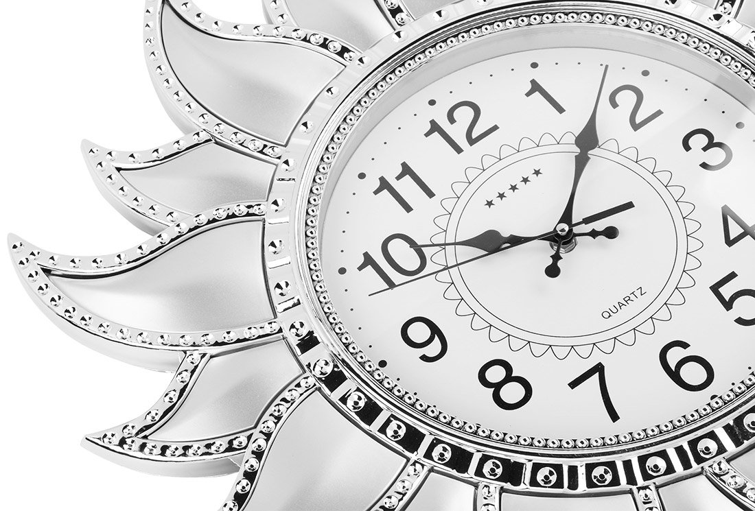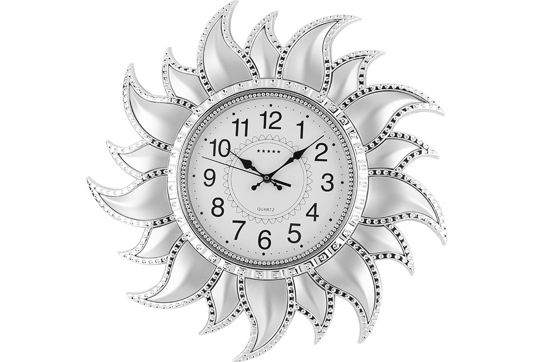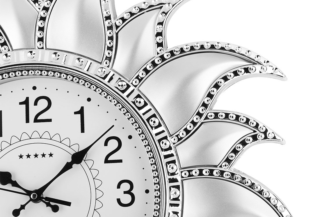 Lieferumfang und Abmessung: 1 x Bavary | Wanduhr | Dekoration | Sonne-Design | Ø 54cm | Rund | Silber| By-ne-878-silver