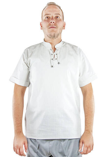 Richter Kragen Islamic Relaxed Fit Kurzarm Hajj Umrah Leinenhemd