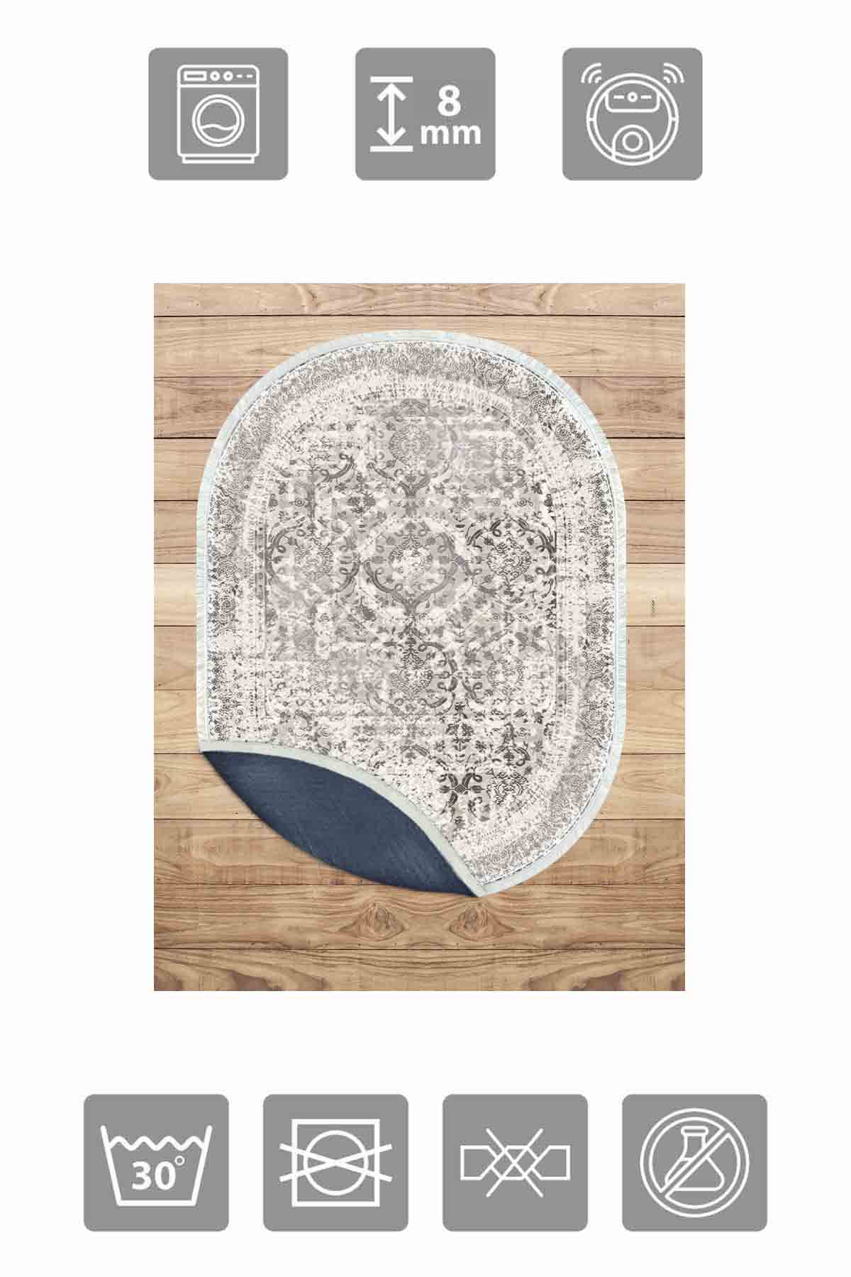 Maße und Lieferung: 1x Birkilim Ovaler, waschbarer, seidiger, rutschfester dekorativer Teppich | MLN-IP-O-HT-340